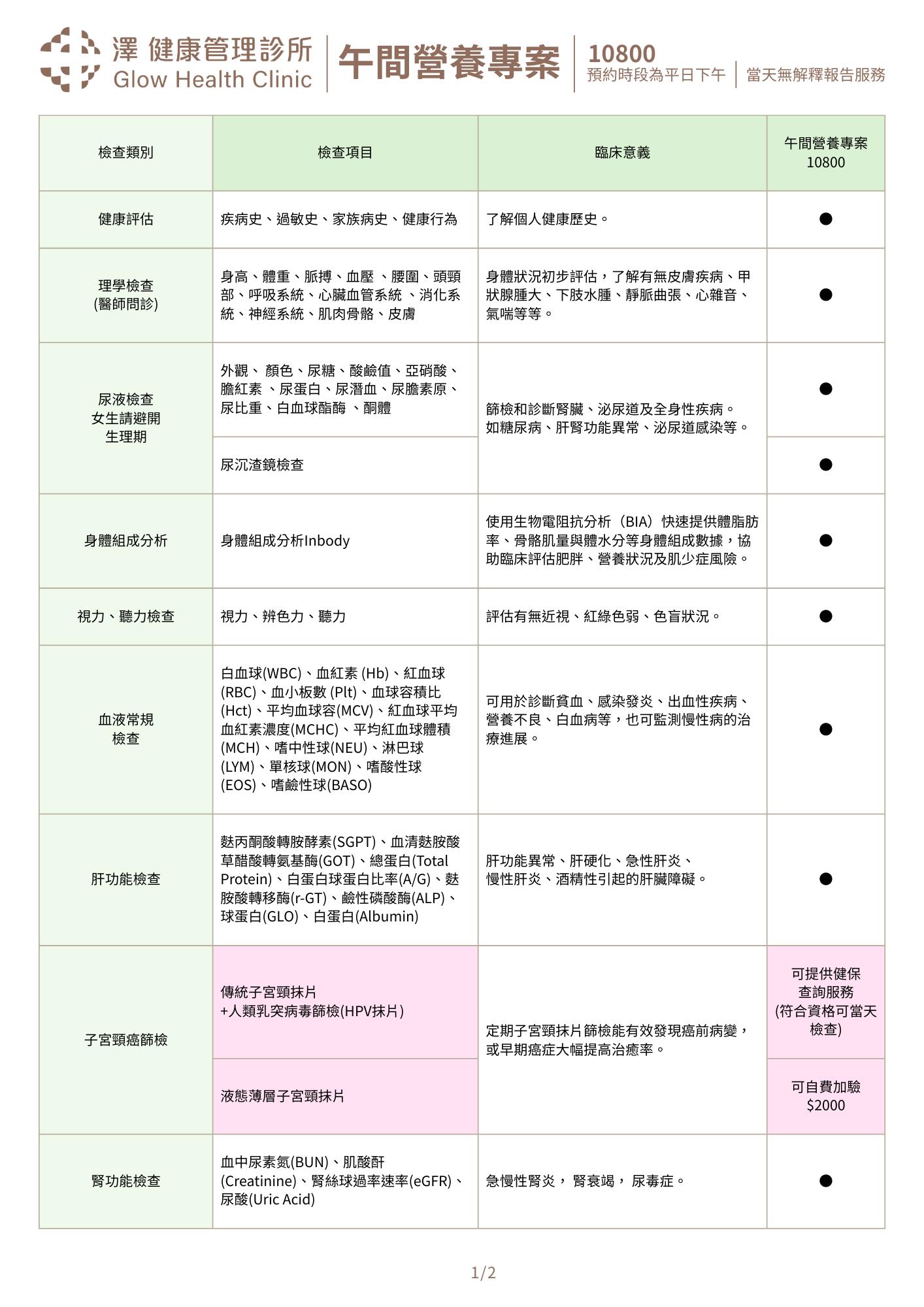 午間營養10800/午間防癌12800