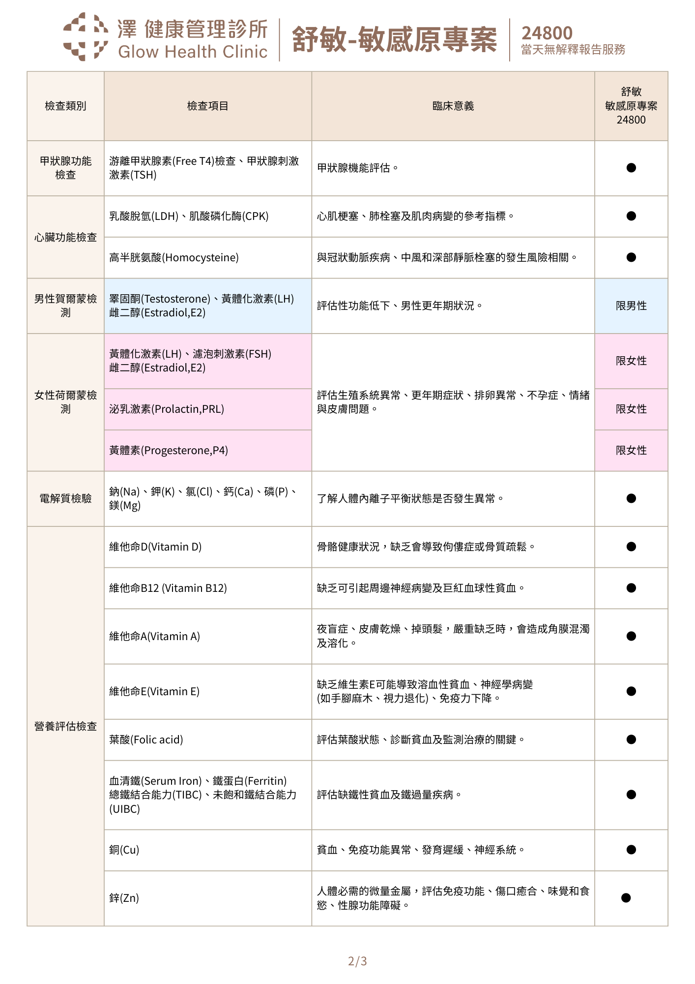 健檢預防醫學選單