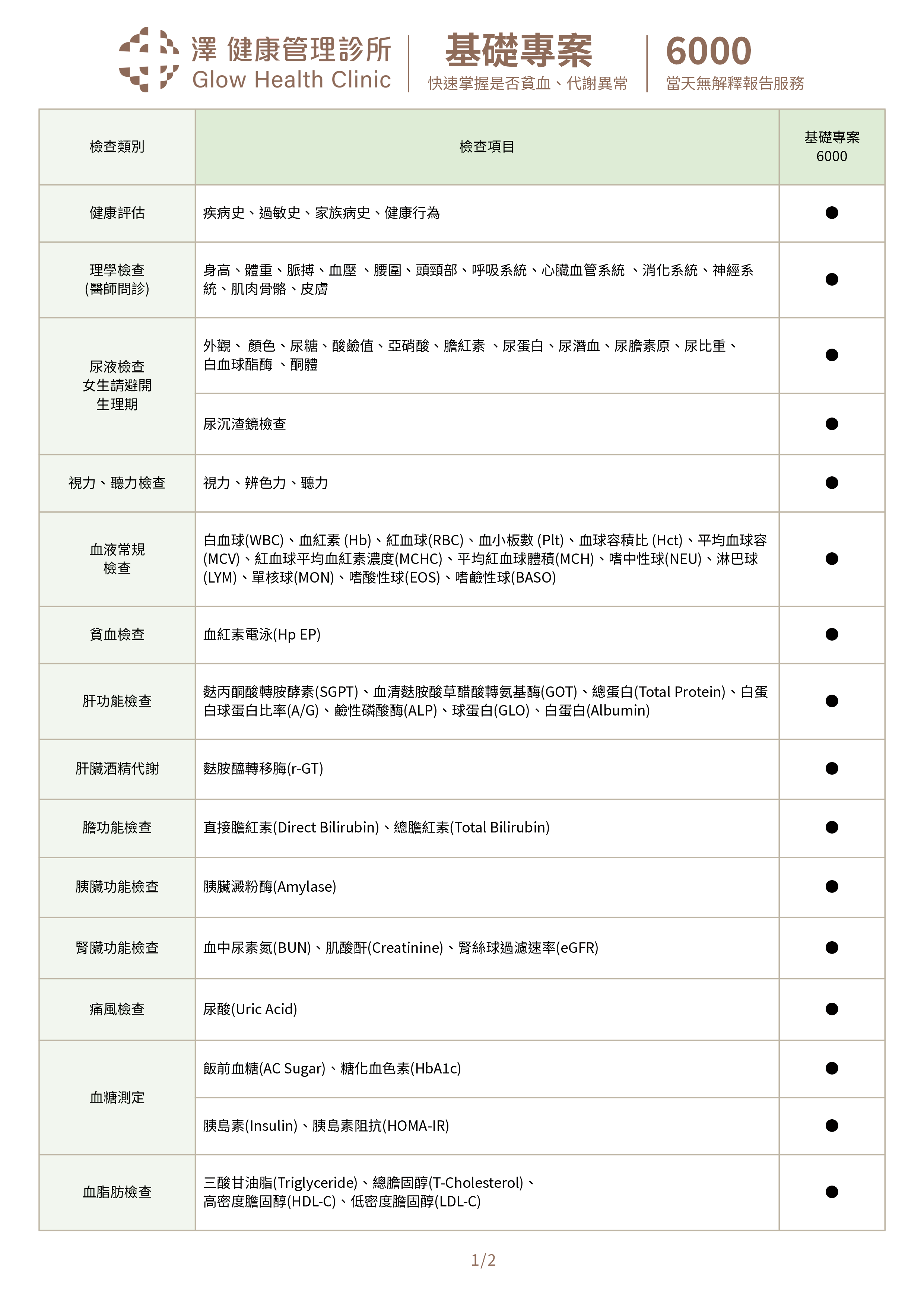 健檢預防醫學選單